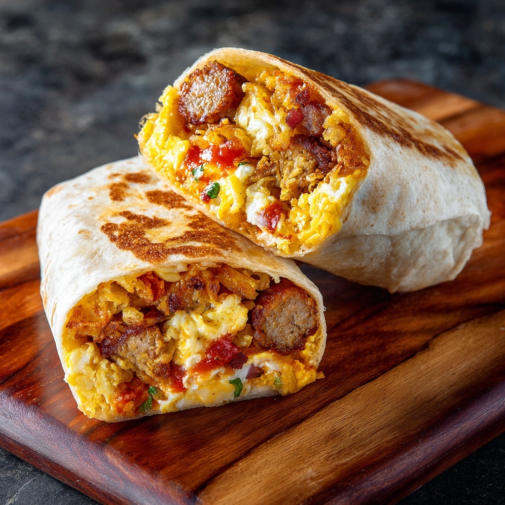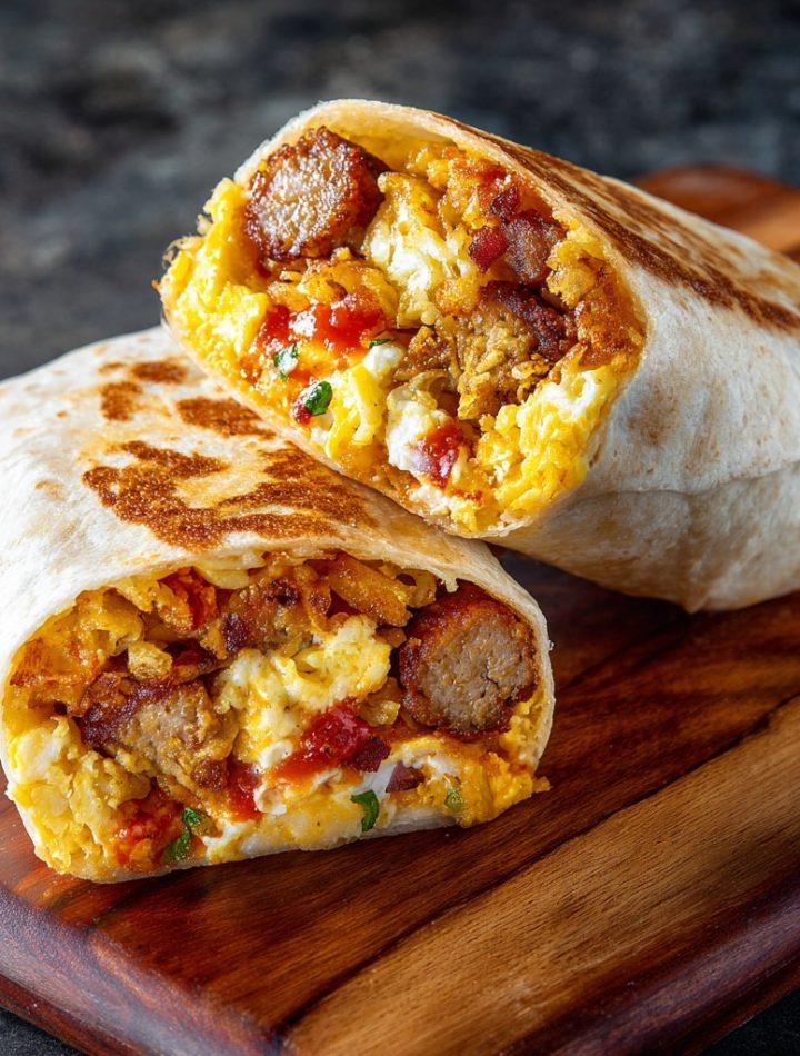 This Breakfast Burrito Wrap is the ultimate morning fuel—loaded with fluffy scrambled eggs, savory sausage, melty cheese, and golden hash browns, all wrapped in a warm tortilla. It’s hearty, satisfying, and easy to prep ahead for busy mornings or brunch boards. Whether you eat it fresh off the skillet or reheat it on the go, this wrap brings classic diner-style comfort to your kitchen.
