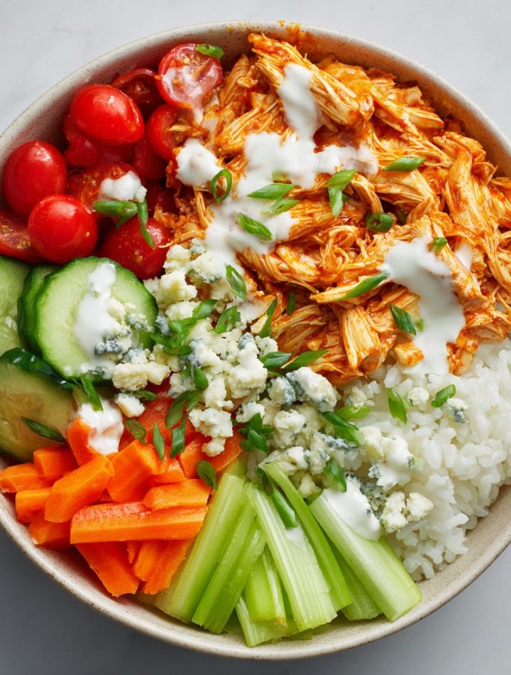 We’re taking everything iconic about game-day wings—the spicy, vinegary sauce, the cool and creamy dressing, the crunchy celery—and we’re packing it into a fresh, balanced, and utterly satisfying meal-in-a-bowl. It’s got your protein, your carbs, your veggies, and that bold flavor wave we all chase. The best part? It comes together faster than you can decide what to watch on TV, and it’s a meal prep superstar. Whether you’re feeding a hungry family, prepping lunches for the week, or just treating yourself to a killer dinner, this bowl is your new best friend. So, grab your favorite hot sauce, and let’s turn that craving into reality!