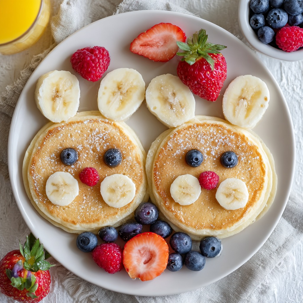We’re making Bunny Pancakes – the ultimate fun, fast, and absolutely adorable Easter breakfast. Imagine the scene: you bring a plate to the table, and you’re met not with just a stack of pancakes, but with a family of cheerful bunny faces, smiling up with their fruity grins. The “oohs” and “aahs” are practically guaranteed. This isn’t about fancy pastry skills or food coloring; it’s about using simple, wholesome ingredients you likely already have to create a moment of pure, edible magic. It’s the kind of recipe that builds core memories in the shape of banana slices and blueberries. So, tie on your favorite apron, grab your whisk (and maybe your favorite little helpers), and let’s turn breakfast into the first, and maybe sweetest, celebration of the day. Ready to hop to it?