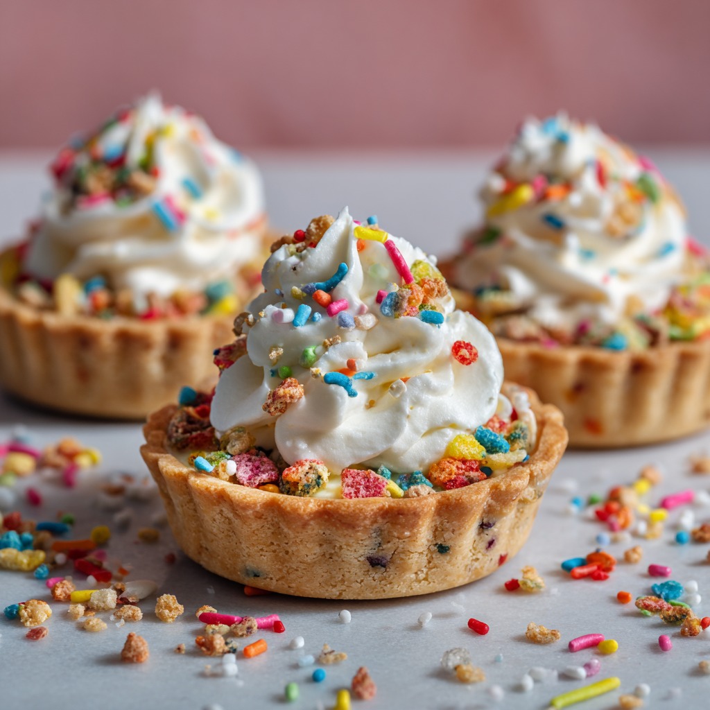 These Funfetti Cereal Milk Tartlets are a whimsical, crowd-pleasing dessert that balances playful colors with rich, creamy flavors. From the buttery blondie crust to the smooth cereal-infused pastry cream and airy whipped topping, each bite is a little celebration. With easy variations and make-ahead options, they’re perfect for parties, special occasions, or any day that calls for a joyful treat. They’re not just dessert—they’re a memory in the making, ready to delight both the eyes and the taste buds.
