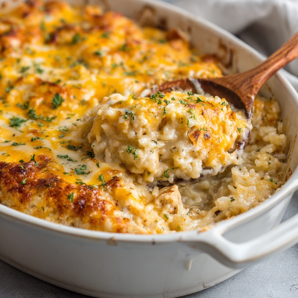 This Cheesy Chicken & Rice Bake is the ultimate weeknight winner—minimal prep, pantry staples, and major comfort in one dish. Juicy chicken tenderloins are baked into creamy, savory rice and topped with bubbling cheese. It’s hearty, kid-friendly, and perfect when you need something satisfying without spending hours in the kitchen.