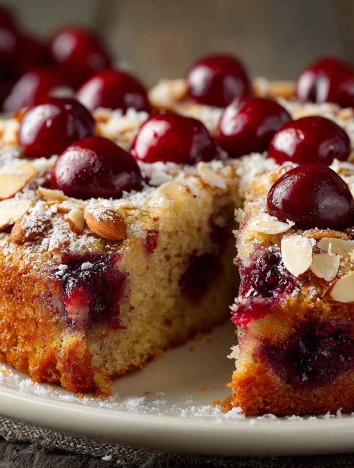 Imagine this: a moist, delicate crumb, thanks to a dream team of almond flour and shredded coconut. Juicy, tart-sweet cherries that burst in every bite. A golden, sugared top with just the right amount of crunch from sliced almonds. It’s the kind of cake that doesn’t demand a fancy occasion. It creates the occasion. The best part? It comes together in one bowl (minimal cleanup, my love language) and bakes in under an hour. Whether you’re a seasoned baker or just finding your flour legs, this recipe is your new best friend. So, tie on your apron, and let’s ride this delicious flavor wave together!
