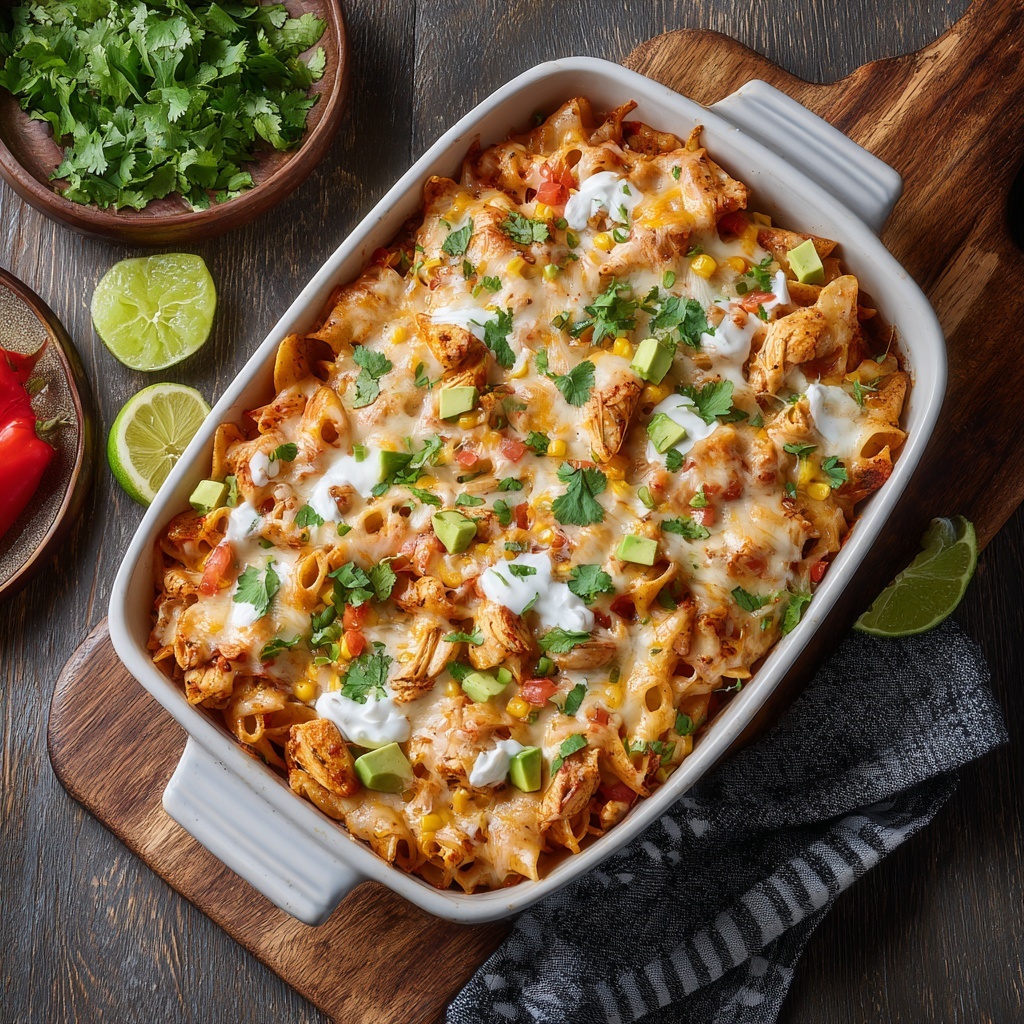 This creamy, cheesy pasta bake is a bold fusion of enchiladas and comfort food. Featuring tender cilantro-lime chicken, black beans, corn, enchilada sauce, and cream cheese—all baked into one bubbly, flavor-packed dish—it’s a weeknight winner your whole table will love.