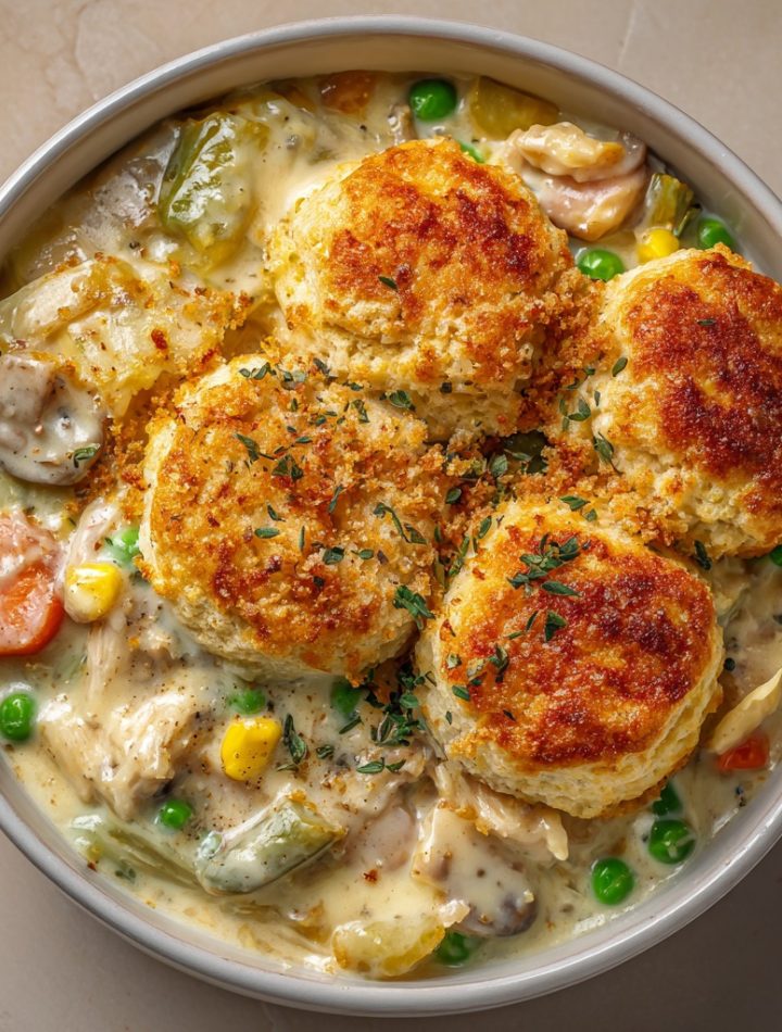 - The Grand Finale: Ladle that beautiful, creamy chicken stew into deep bowls. Top generously with the warm, buttery biscuit crumbles. The contrast of the hot, creamy stew and the crispy, golden topping is everything.
