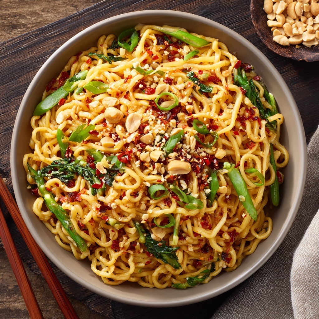 - The Grand Finale: Transfer your magnificent noodle creation to a bowl. Now, shower it with the sliced scallions, a generous sprinkle of sesame seeds, and a handful of chopped peanuts for that critical crunch factor. Chef’s Hack: A final, extra little drizzle of chili crunch right over the top makes for a stunning presentation and an extra kick of heat.