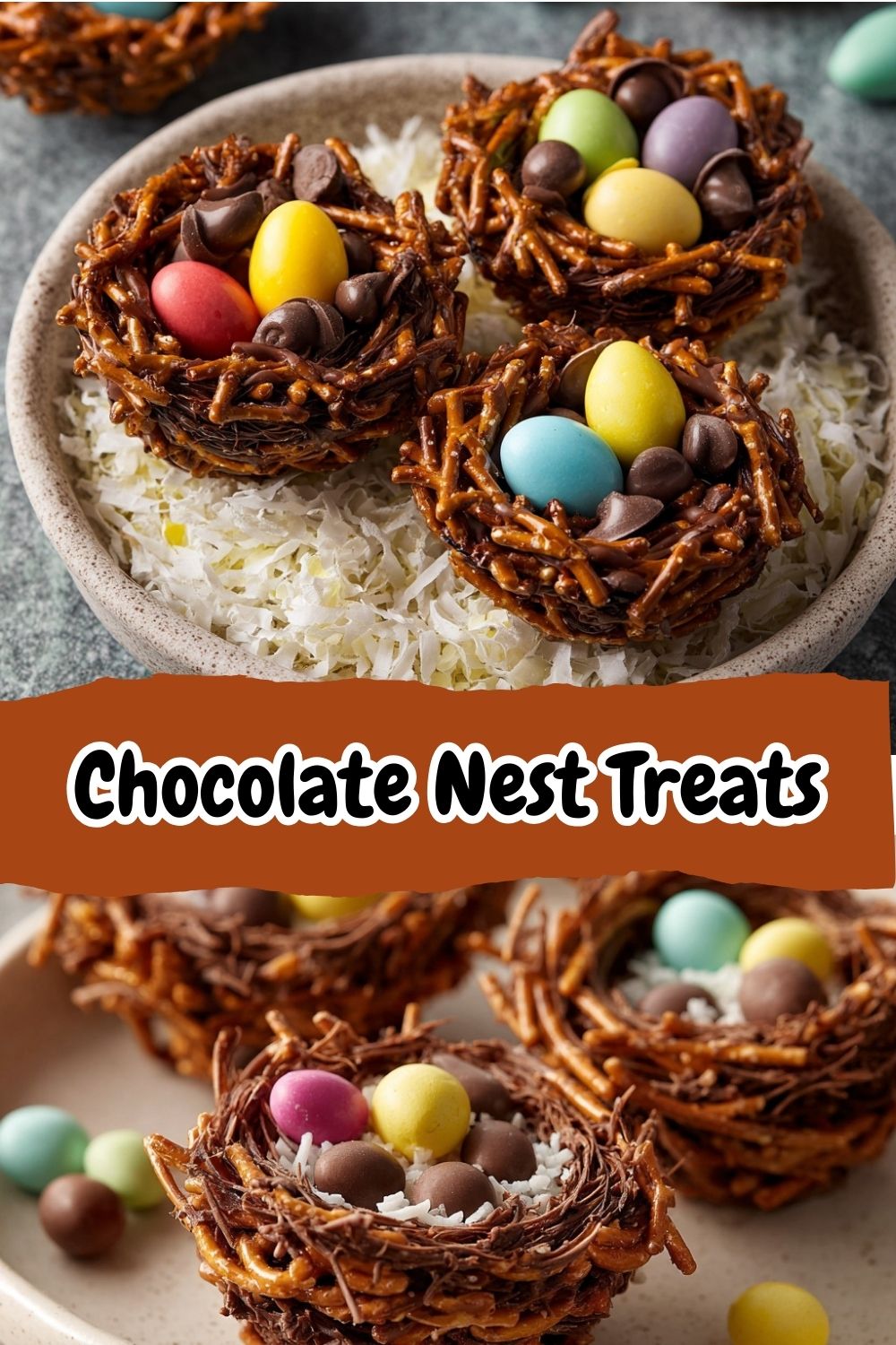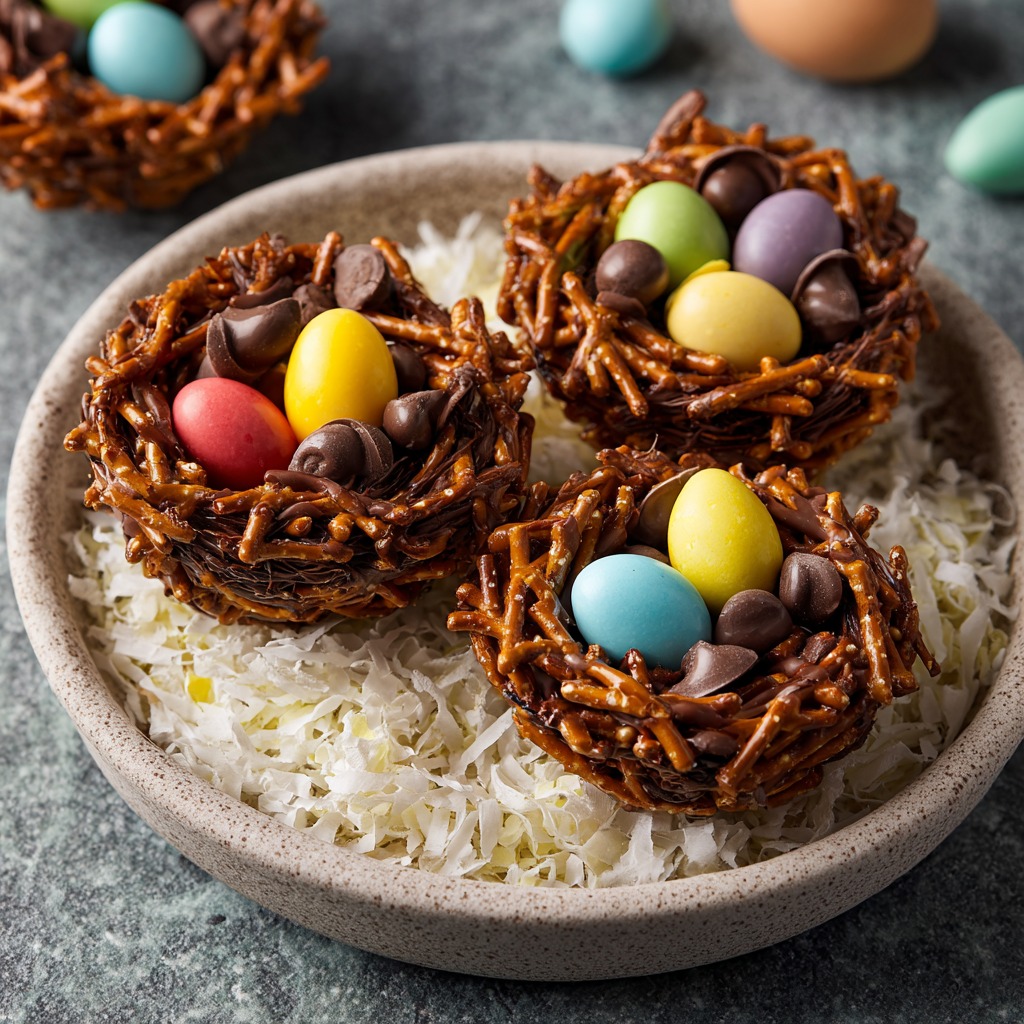 Keywords: Easter treats, no-bake dessert, kids recipe, chocolate nests, candy eggs, holiday recipe