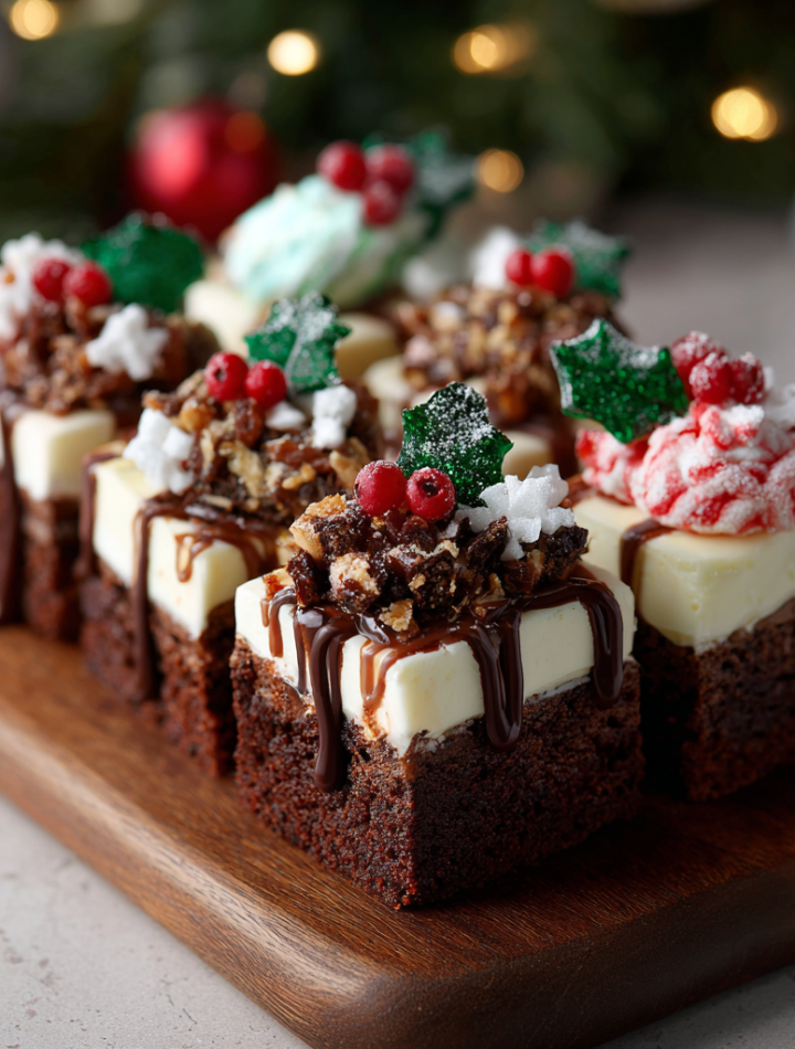 Presentation is half the fun! I love arranging these brownie presents on a simple white platter or a rustic wooden board to really make the colors pop. Stack a few on a cake stand for a gorgeous centerpiece, or individually wrap them in clear cellophane bags tied with a real ribbon for the most adorable (and delicious) homemade gifts for teachers, neighbors, or friends. They’re perfect with a cold glass of milk, a mug of hot cocoa, or a festive espresso martini for the grown-ups!