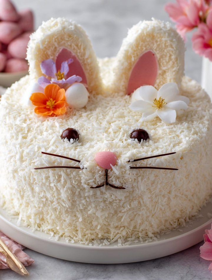 This isn’t just a cake; it’s a memory-maker, a guaranteed “Aww!” moment, and a total confidence booster. We’re taking a supremely soft, dreamily coconutty layer cake, giving it a smooth coat of tangy cream cheese frosting, and then—with a flurry of coconut flakes and a few cute candies—transforming it into the most adorable bunny you ever did see. No tricky mold, no carving anxiety. Just simple, fun, utterly celebratory baking. So, tie on your favorite apron, preheat that oven, and let’s create a centerpiece that’s as fun to make as it is to eat. Ready to hop to it?