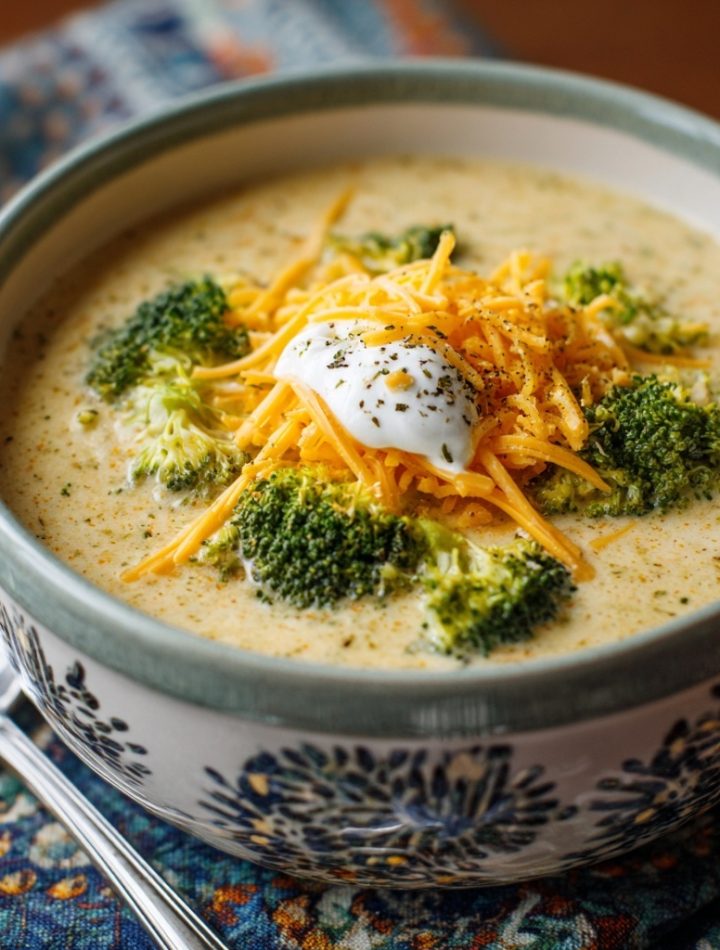 Creamy Broccoli Cheddar Protein Soup (Greek Yogurt Base, Lightened-Up Comfort)