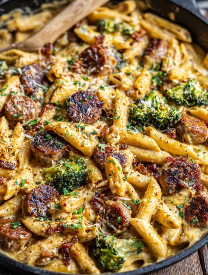 This Creamy Cajun Sausage Alfredo Pasta is comfort food with a kick. It’s rich, smoky, cheesy, and loaded with juicy sausage, tender broccoli, and penne pasta coated in a velvety Cajun-spiced Alfredo sauce. Perfect for a family dinner, meal prep, or whenever your cravings call for creamy indulgence with attitude.