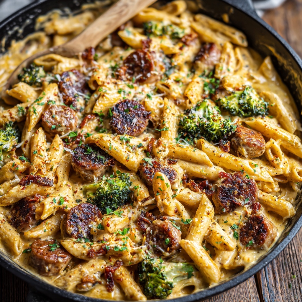 Presentation is part of the fun! I love serving this pasta family-style, right out of the warm skillet in the middle of the table—it just feels so welcoming. For a real restaurant touch, use a pair of tongs to twirl a nest of pasta into a warm bowl, making sure to get plenty of those sausage slices and broccoli florets on top. Finish with that fresh herb garnish for a pop of color. This dish is a complete meal in a bowl, but if you want to round it out, a simple arugula salad with a lemony vinaigrette or some crusty, warm garlic bread for dipping is absolutely divine.