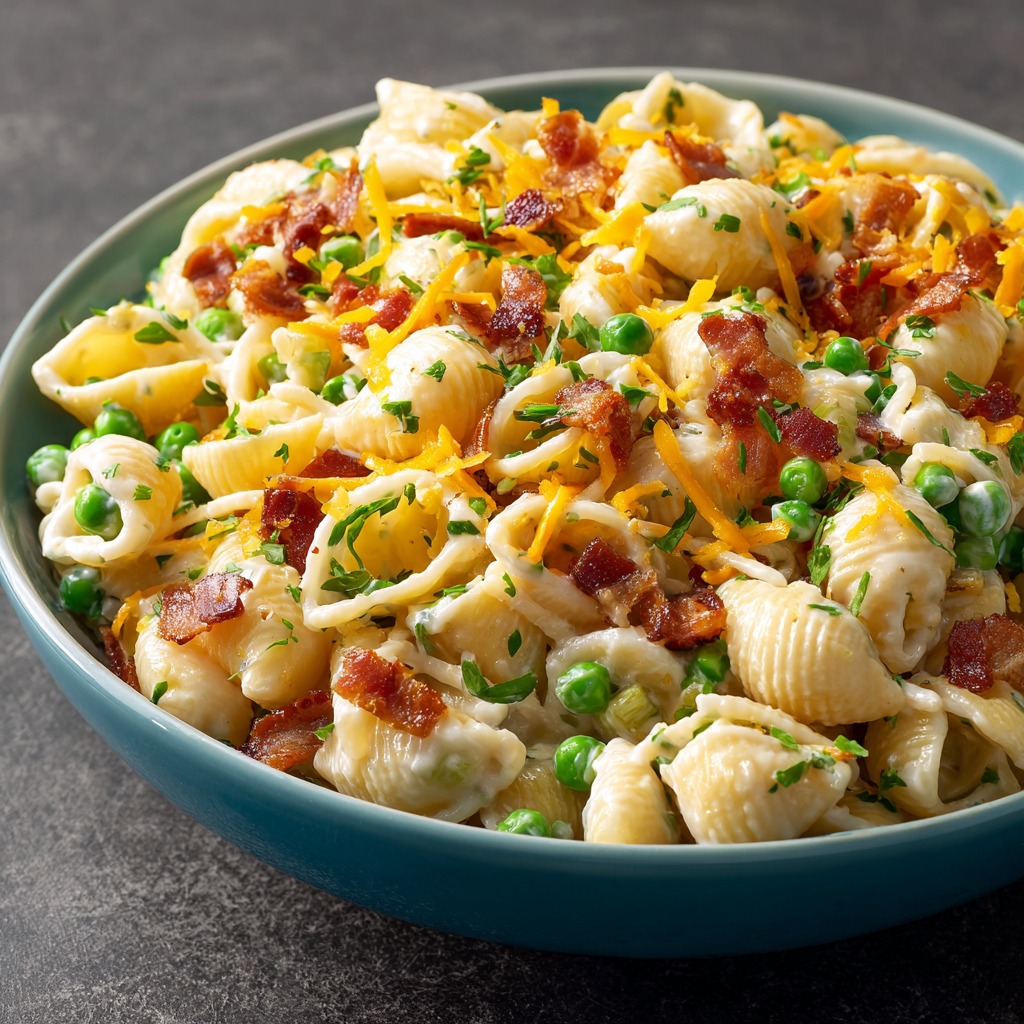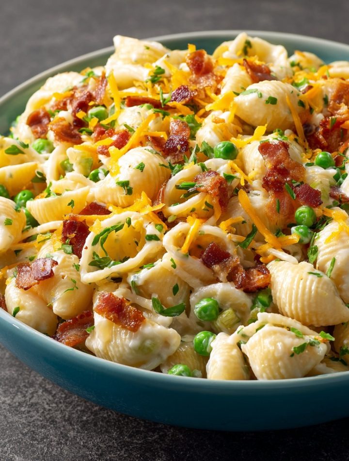 This isn’t just any pasta salad. This is the MVP of side dishes, the reliable champion that bridges the gap between cozy comfort and downright celebratory flavor. It’s the salad you make when you want zero stress and maximum “wow.” Picture tender shell pasta cradling a creamy, tangy dressing, studded with crispy, salty bacon, pops of sweet peas, and pockets of sharp cheddar cheese. Every single bite is a perfect, harmonious little party in your mouth.