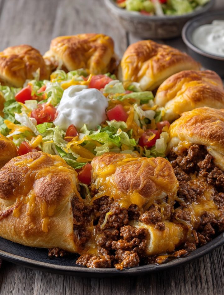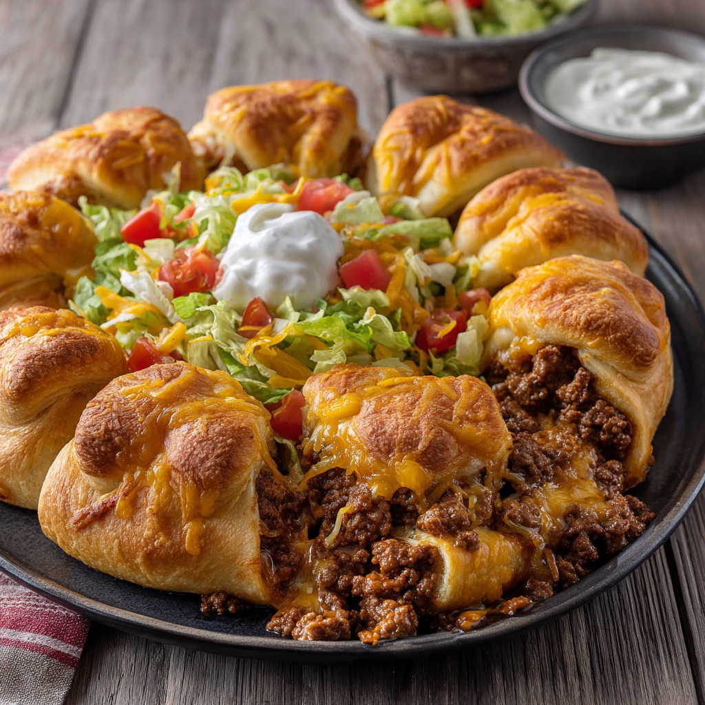 Now, I know what you might be thinking. “Isla, a taco… ring?” Trust me, I get it. But this isn’t just a recipe; it’s an experience. Imagine all the craveable, bold flavors of your favorite taco night—the savory seasoned beef, the gooey melted cheese, the cool, crisp toppings—wrapped up in a warm, golden, buttery crescent roll blanket, baked into a gorgeous, pull-apart ring that lands right in the center of your table like a culinary trophy.
