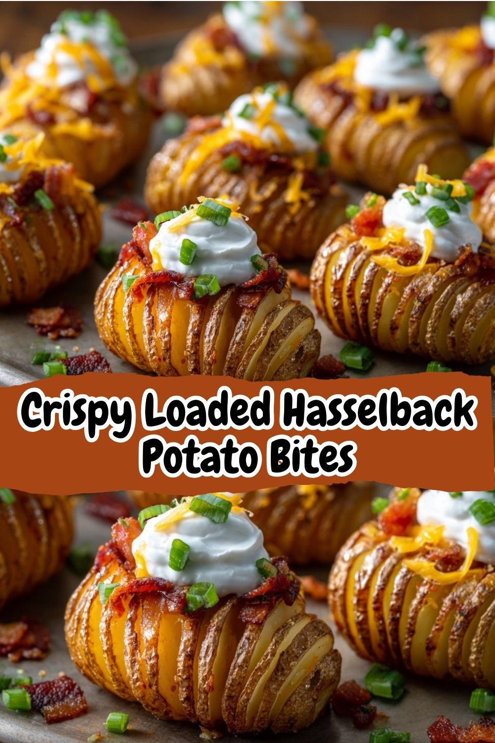 These Crispy Loaded Hasselback Potato Bites are everything you love about a loaded baked potato—packed into one delicious, bite-sized appetizer. Each potato is sliced, roasted until golden and crisp, then loaded with melty cheese, crispy bacon, sour cream, and scallions. Serve these at your next gathering and watch them disappear fast!