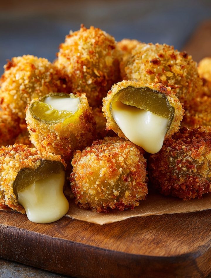 Crunchy, cheesy bites featuring tangy pickles wrapped in crispy, golden‑fried cheese — an irresistible snack that’s perfect for parties or cravings.