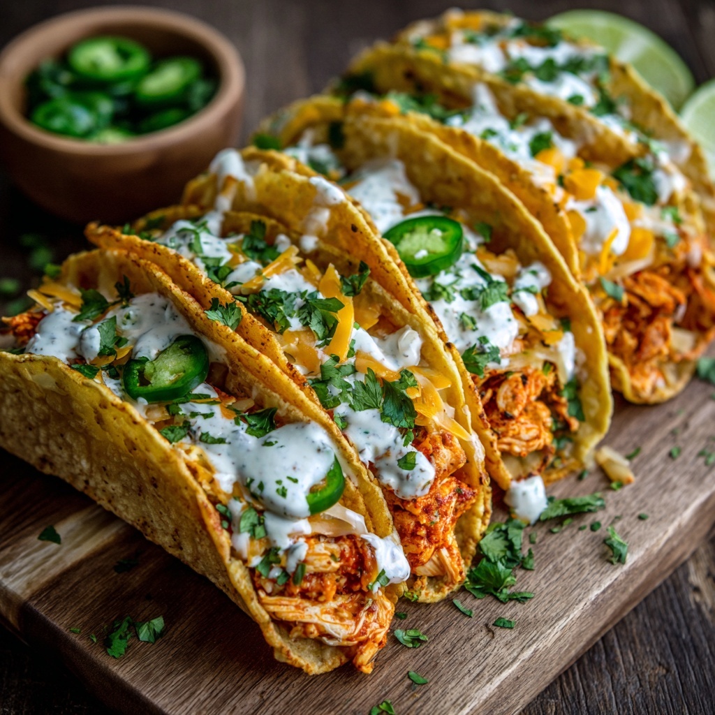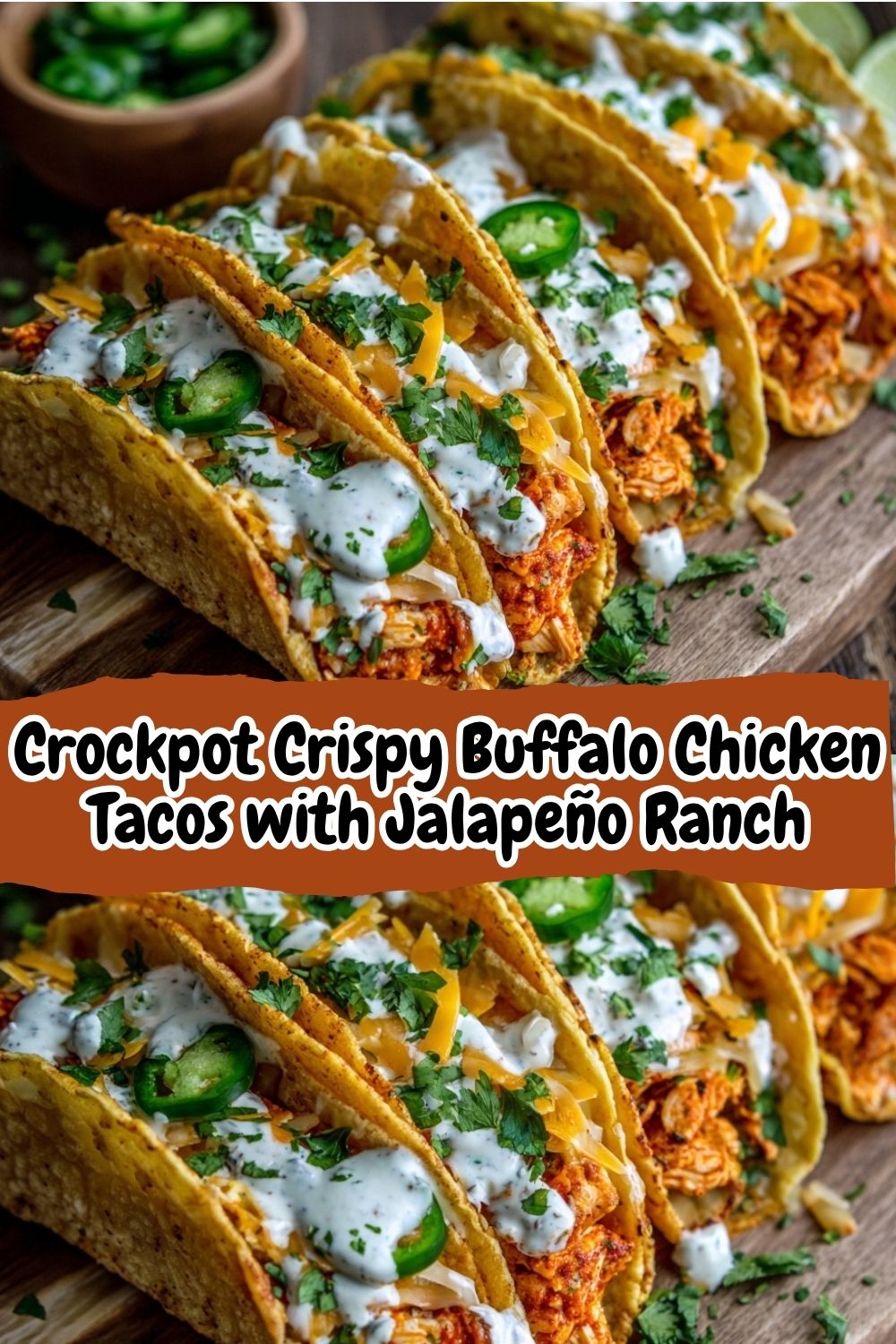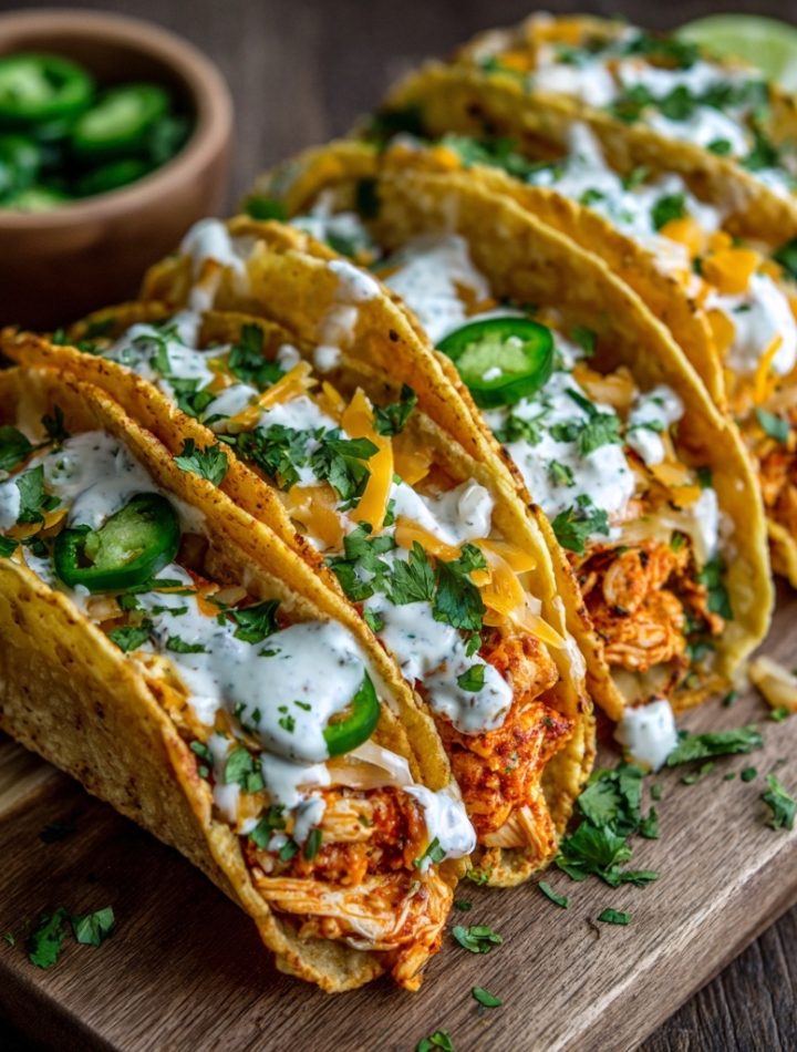 Crockpot Crispy Buffalo Chicken Tacos with Jalapeño Ranch : Spicy, Cheesy & Oven-Baked