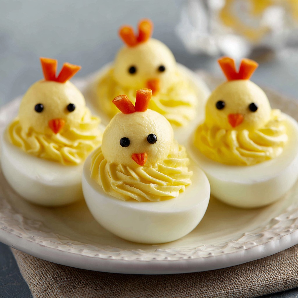 Presentation is half the fun! Don’t just plop these on a plate. Create a little nest for them. Shred some lettuce (butter lettuce works beautifully) or fresh spinach on a serving platter. Arrange your chick eggs on top. For an extra springy touch, scatter a few halved grape tomatoes (little “Easter eggs!”) or fresh parsley “grass” around the plate. It transforms your appetizer into a centerpiece that’s almost too cute to eat… almost.