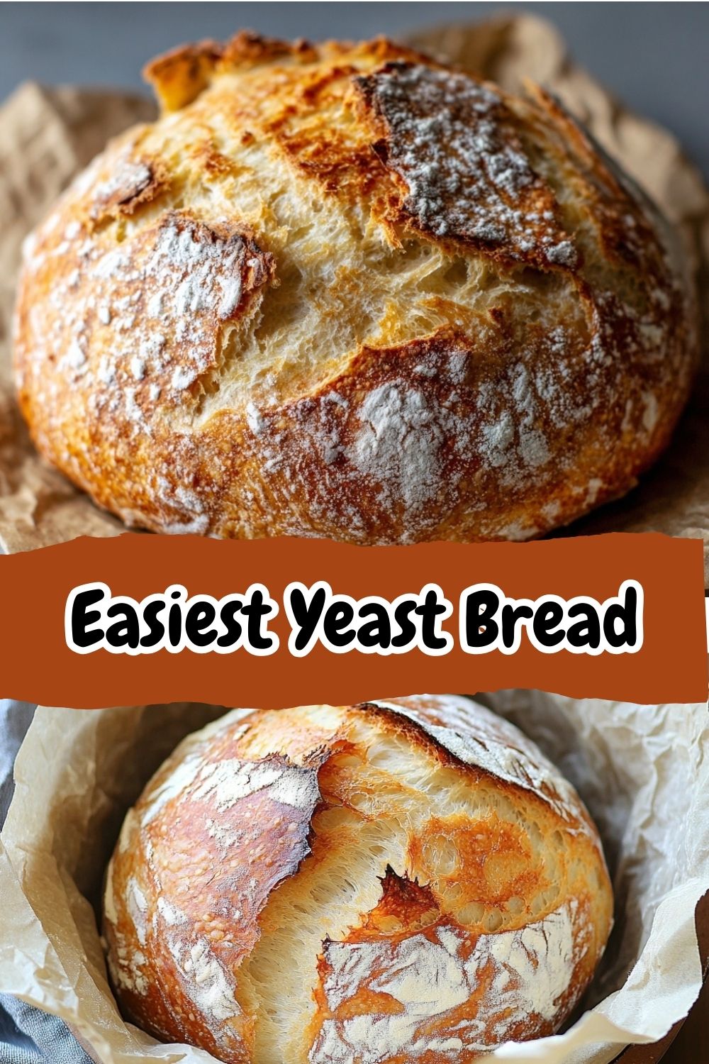 This is the easiest yeast bread you’ll ever make—no kneading, no fancy tools, and no stress. Just mix, rise, and bake for a golden, crusty loaf with a chewy interior that rivals any bakery. Perfect for toast, dipping, or sandwiches, this artisan-style bread is your new go-to homemade staple.