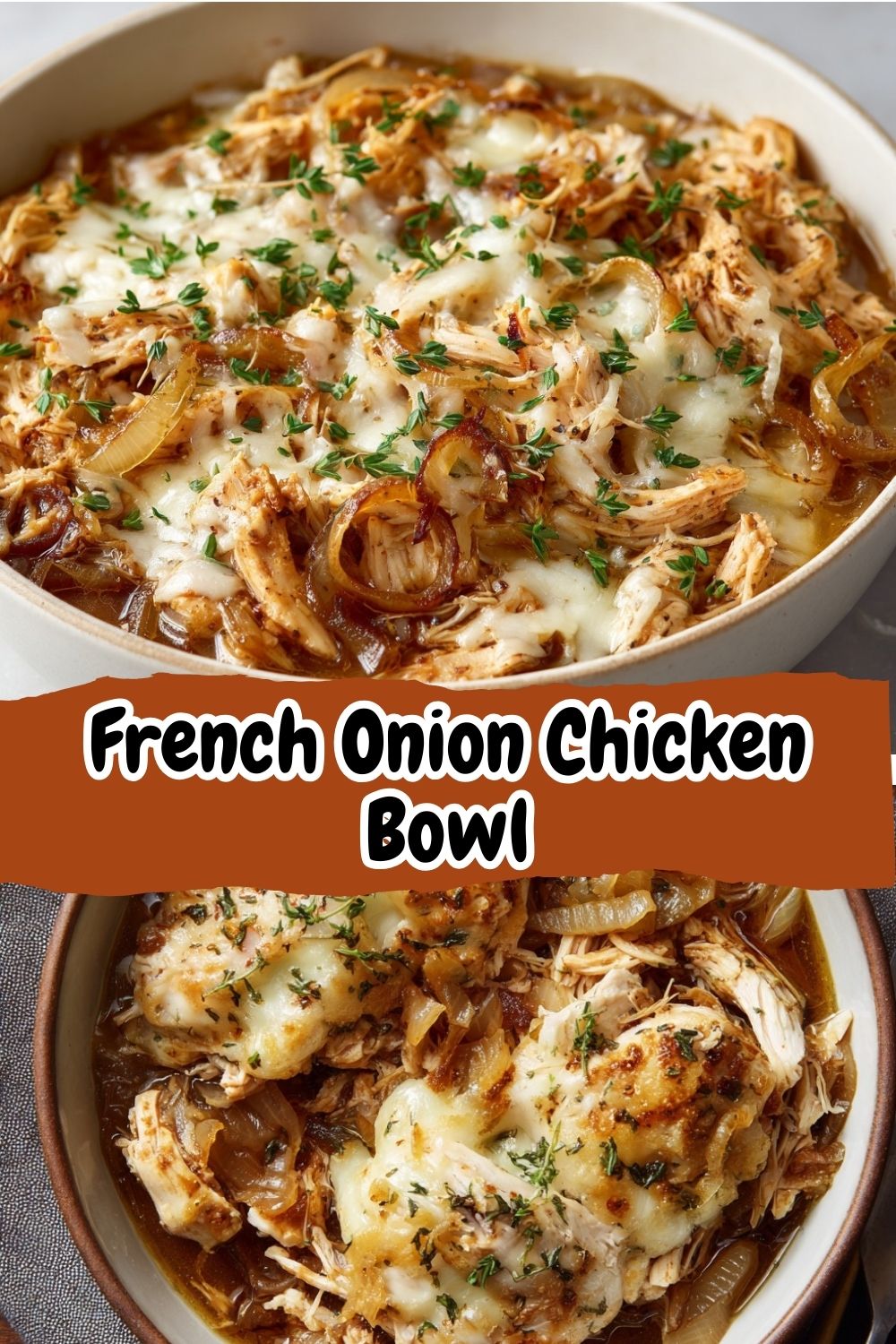 Keywords: French onion chicken bowl, caramelized onion chicken, cozy comfort bowl, lighter French onion recipe
