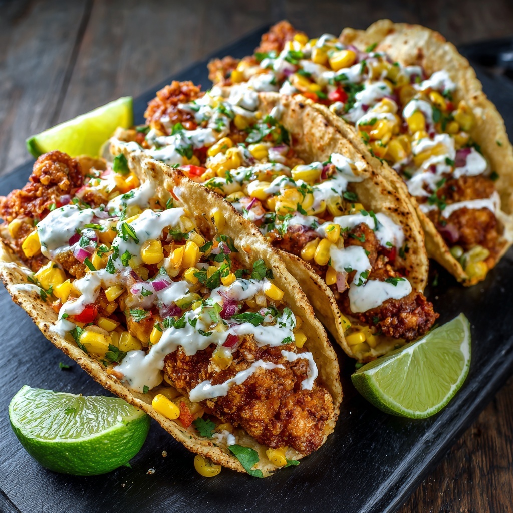 Fried Chicken Street Corn Tacos : Crispy, Creamy & Bold Flavored Fiesta