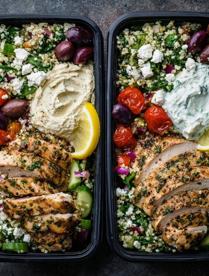 We’re talking about a symphony of sun-drenched Mediterranean flavors, all hanging out together in one convenient container. Imagine this: juicy, oregano-kissed chicken resting next to a cloud of cool, garlicky tzatziki. A scoop of creamy hummus waiting to be swiped through, briny Kalamata olives popping with saltiness, and a confetti of the freshest, most herby tabbouleh you’ve ever tasted. It’s a meal that feels indulgent but is secretly packed with clean, energizing ingredients designed to power you through your day. I designed these bowls to ride the perfect wave between “I’m eating so well!” and “Wow, this is ridiculously delicious.” So, grab your favorite meal prep containers, and let’s build a week of wins, one flavorful bite at a time.