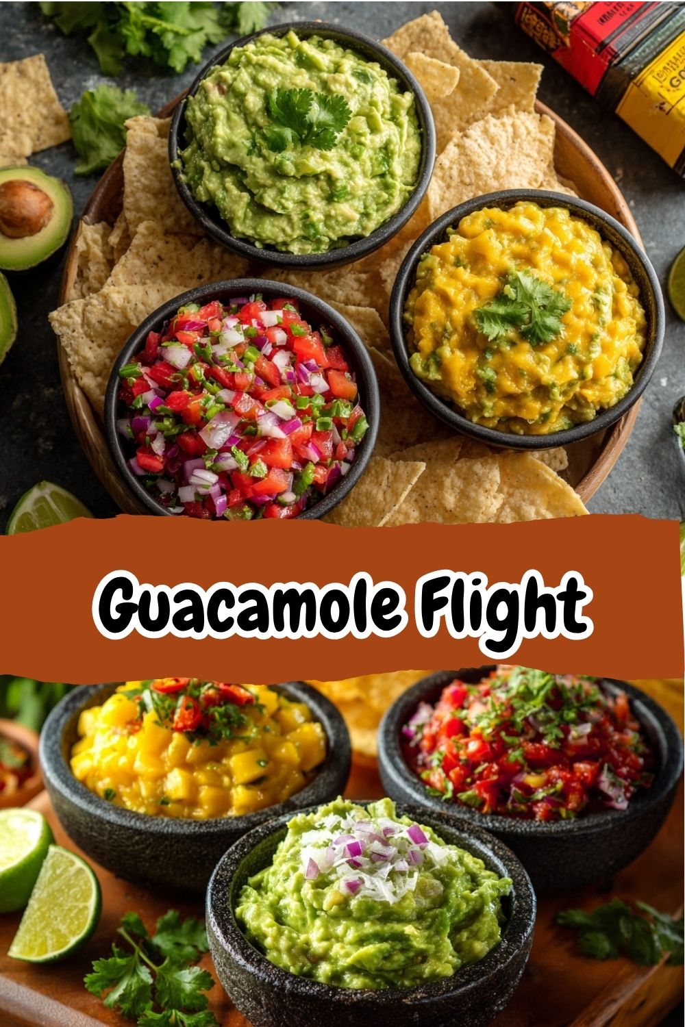 Turn your dip game up a notch with this colorful, flavor-packed Guacamole Flight! Featuring three vibrant versions—Classic, Spicy Mango, and Smoky Chipotle—this trio delivers creamy, bold bites for every kind of guac lover. Perfect for parties, game nights, or just a next-level snack spread. Grab some tortilla chips or crunchy bell pepper dippers and dive in!