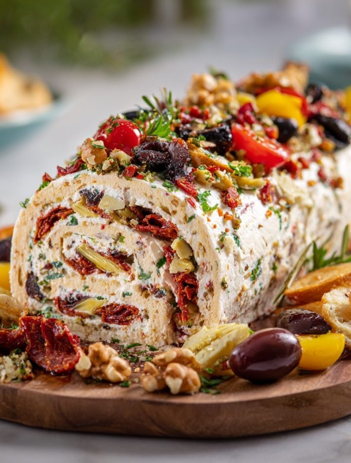 7. The Grand Finale: The Garnish: About 30 minutes before serving, prepare your garnish. Mix the chopped parsley, red peppers, olives, and nuts together on a large plate or cutting board. Unwrap your firm, beautiful log and roll it gently in the garnish mixture, pressing lightly to make sure everything sticks. You’ll have a stunning, confetti-covered masterpiece ready to wow your guests.