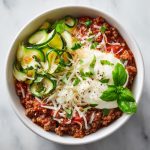Enter the hero we all need: the Lightened-Up Lasagna Bowl. This isn’t a “diet” food. This is a smart, delicious, and wildly satisfying reinvention. It’s a deconstructed, no-pasta-needed wonder that delivers every single nostalgic bite. We’re talking savory, seasoned meat, marinara that’s had a minute to get friendly with that meat, tender zucchini ribbons standing in for noodles, and glorious, cool dollops of ricotta that melt just so into the warmth. It’s cozy, cheesy, and proof that you can absolutely have it all—without the fuss.