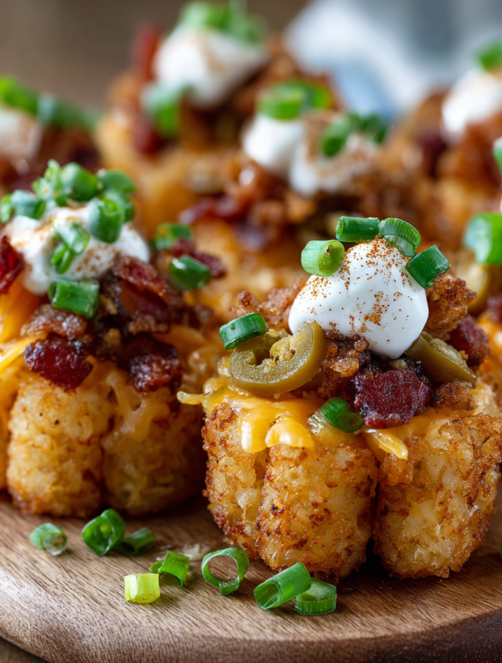 8. The Grand Finale (Toppings): Arrange your beautiful tot cups on a serving platter. Now, get artistic! Dollop each one with a little cool sour cream, then sprinkle generously with green onions, a few pieces of pickled jalapeño (if you’re using them), a dusting of smoked paprika, and a final flourish of fresh chives. Serve immediately and watch them vanish!