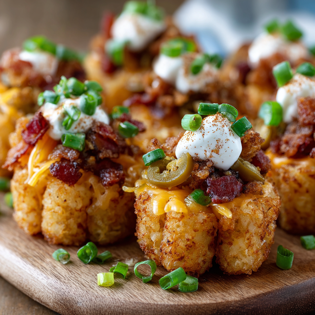 These Loaded Tater Tot Cups take classic comfort food and turn it into the perfect handheld party bite. With their crispy potato base, melty cheese, savory bacon, and fresh toppings, they’re guaranteed to disappear fast. Whether you stick to the original or try fun twists like Buffalo Chicken or Philly Cheesesteak, this easy recipe will become your new go-to appetizer for every occasion!