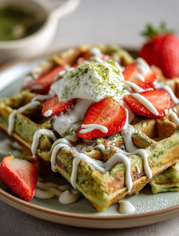 These Vibrant Matcha Belgian Waffles with White Chocolate are a brunch lover’s dream — beautifully crisp, tender, and infused with the delicate earthiness of matcha. The creamy white chocolate drizzle adds a touch of indulgence, while fresh strawberries bring balance and color. Perfect for slow weekends, special occasions, or when you want to treat yourself to café-style elegance at home, these waffles make every bite feel like a moment of luxury and calm.