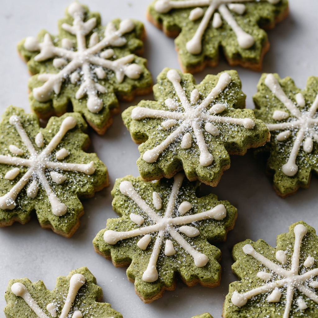 When our fingers were too numb to feel our faces, we stumbled back inside, smelling of cold air and wool. To warm us up, Grandma handed us mugs of hot chocolate, but hers was different. It was this pale, beautiful green. “It’s matcha,” she’d said with a wink. “Warmer than the sun.” That first sip was a revelation—earthy, rich, and so deeply comforting. These cookies are my edible love letter to that day: the delicate structure of a snowflake, the warm, unique comfort of matcha, and the sweet, creamy joy of a treat shared with someone you love. It’s a little bit of nostalgia, baked into every single bite.
