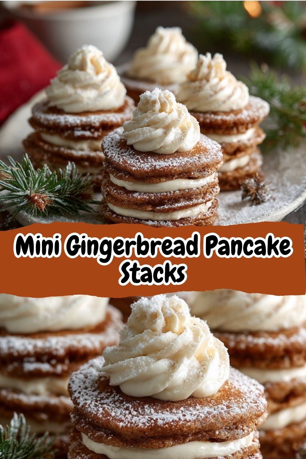 These Mini Gingerbread Pancake Stacks are warm, cozy, and bursting with holiday flavor. Fluffy pancakes spiced with cinnamon, ginger, and molasses are layered with a rich cream cheese frosting and topped with powdered sugar “snow.” They’re perfect for festive brunches, dessert platters, or a whimsical holiday breakfast everyone will love.