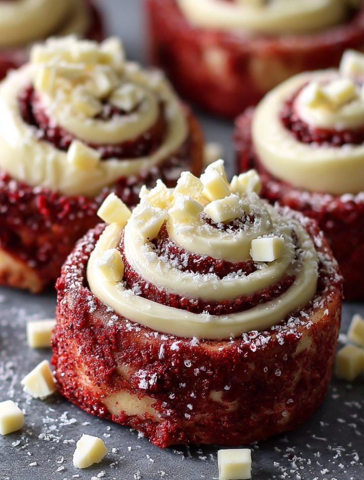 Mini Red Velvet Cinnamon Rolls : Fluffy, Festive & Frosted