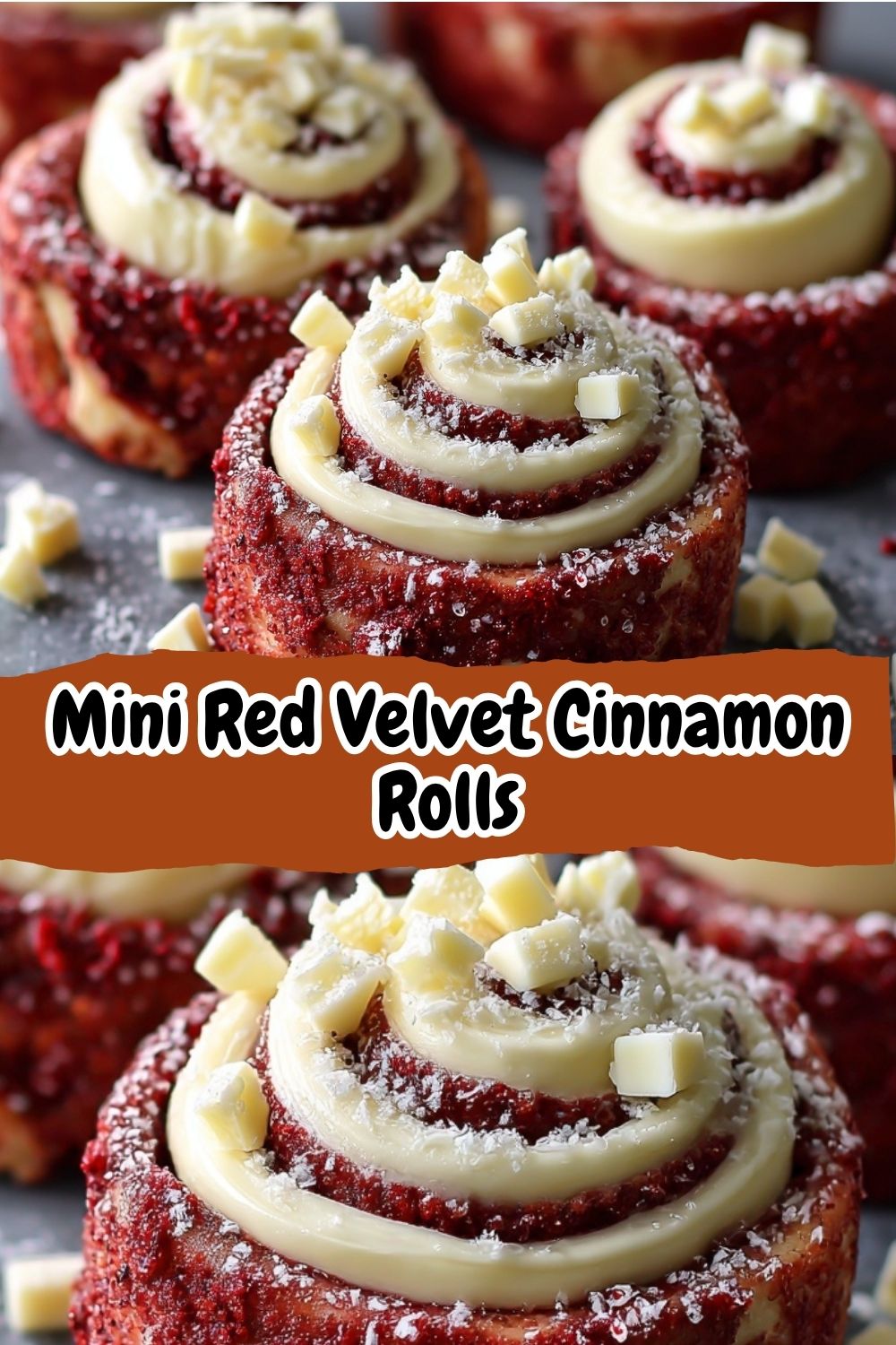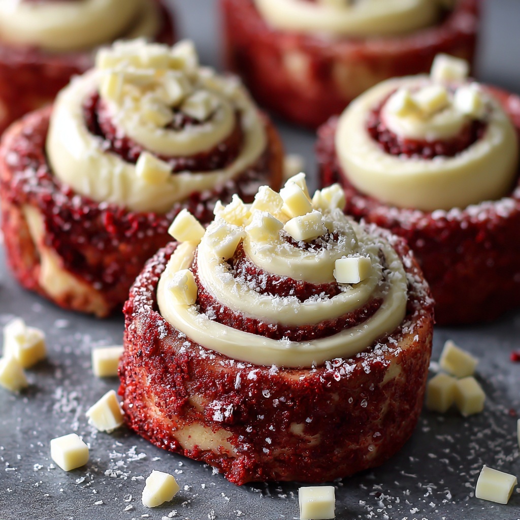 Presentation is part of the fun! I love piling these Mini Red Velvet Cinnamon Rolls high on a beautiful cake stand or a rustic wooden board. They’re stunning all on their own, but for a real holiday brunch spread, serve them alongside a big pot of strong coffee, a pitcher of cold milk, or even some frothy hot chocolate. The deep red, bright white frosting, and snowy chocolate make them a natural centerpiece. Watch them disappear as your friends and family dive in—their vibrant color and incredible aroma are absolutely irresistible!