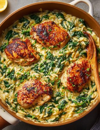 - Bring It All Together: After about 10 minutes, your pasta should be just about al dente and most of the liquid will have been absorbed. Now, stir in the massive pile of spinach and return the seared chicken (and any juices from the plate!) back to the pan. Simmer for another 2-3 minutes. The spinach will wilt down beautifully, and the chicken will finish cooking through.