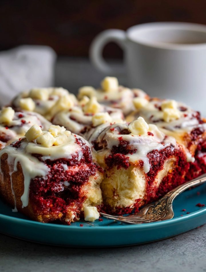 These Red Velvet Cinnamon Rolls are a rich and vibrant twist on the classic cinnamon‑roll brunch bake—pillowy red‑velvet dough swirled with cinnamon‑sugar filling and topped with tangy cream‑cheese icing.