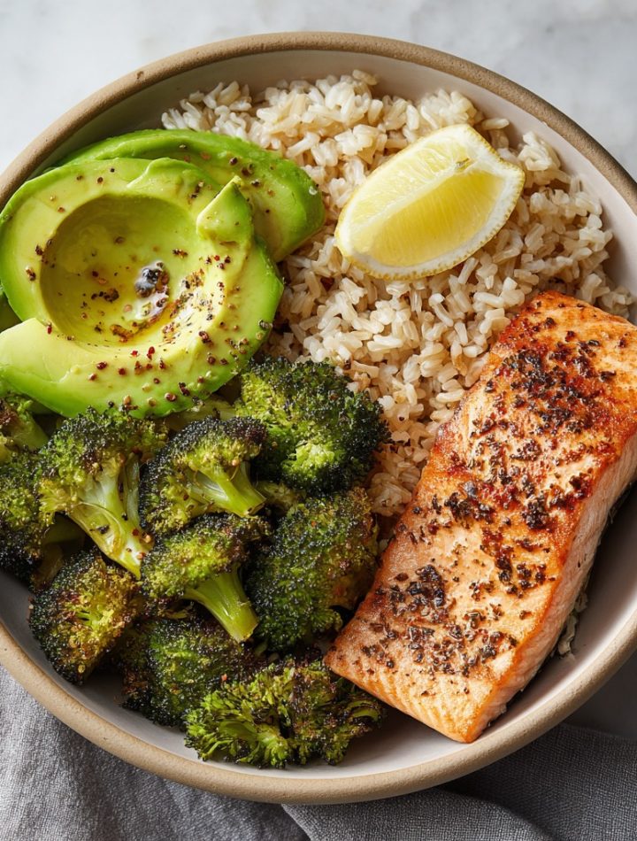 This balanced bowl is everything you need in one: lean protein, fiber-rich carbs, and healthy fats. Made with flaky salmon, fluffy brown rice, sautéed or steamed broccoli, and creamy avocado, it’s a wholesome, satisfying meal that’s easy to prep and easy to love.