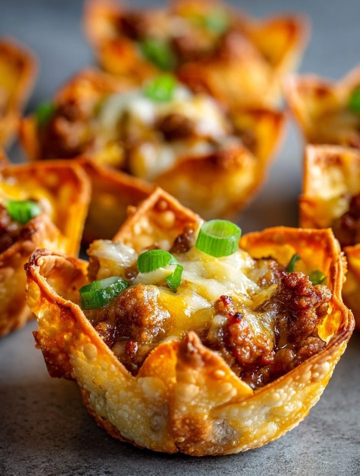 Savory mini cups made with crispy wonton wrappers, filled with seasoned sausage, melted cheese and ranch‑creaminess—perfect for parties or game‑day snacking.