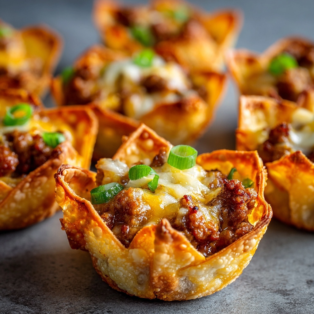 Imagine this: a perfectly crisp, golden-brown wonton shell, cradling a savory, warmly spiced filling of juicy sausage and not one, but two kinds of glorious, melty cheese. They’re bite-sized, they’re bursting with flavor, and they are ridiculously easy to make. I’m talking 15 minutes of prep for a tray of pure, unadulterated joy. This is the kind of recipe that becomes a staple in your playbook—the one you’ll be asked to bring to every single event forever. So, tie on your favorite apron, preheat that oven, and let’s make some magic happen. These little cups are about to become your new best friend in the kitchen.