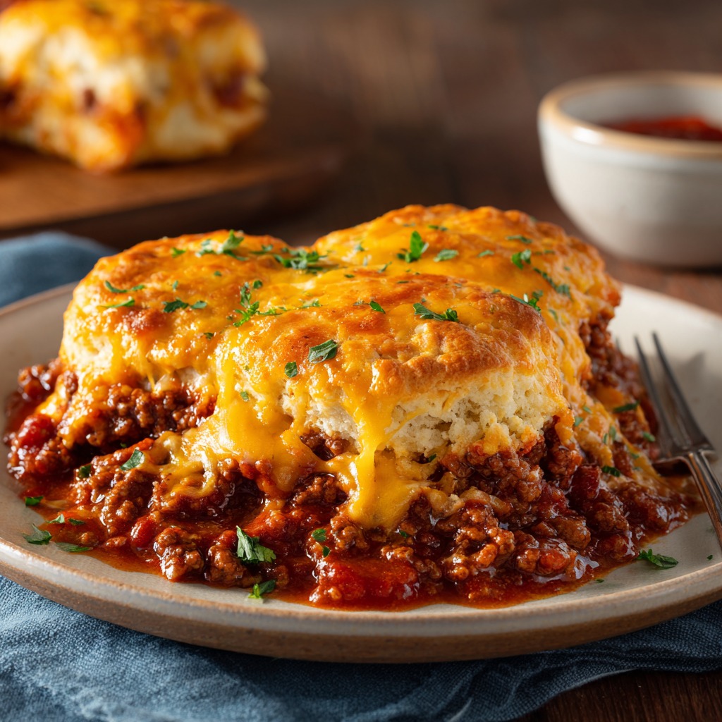 - Top & Bake. If you’re going the biscuit route, now’s the time! Separate the biscuits. You can leave them whole for fluffy “buns” on top, or for more coverage, I love tearing or cutting each one into quarters and scattering them unevenly over the cheese. It creates gorgeous, buttery nooks and crannies. Pop the dish into your preheated oven and bake for 20-25 minutes. You’re looking for bubbly sauce around the edges, fully melted cheese, and biscuits that are puffed and deeply golden brown.