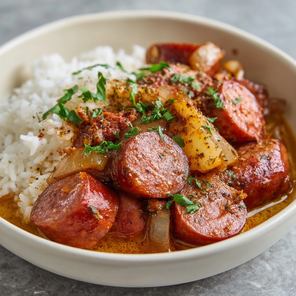 This recipe always takes me right back to my grandma’s crowded, warm kitchen on a rainy coastal afternoon. She wasn’t one for fussy techniques, but she was a master of the “throw it in and let it be” school of cooking—especially when the grandkids were underfoot. Her version involved a big, old Dutch oven and whatever smoked sausage was on sale, simmering with onions and peppers from her garden. The smell would weave through the house, acting like a dinner bell that none of us could ignore.