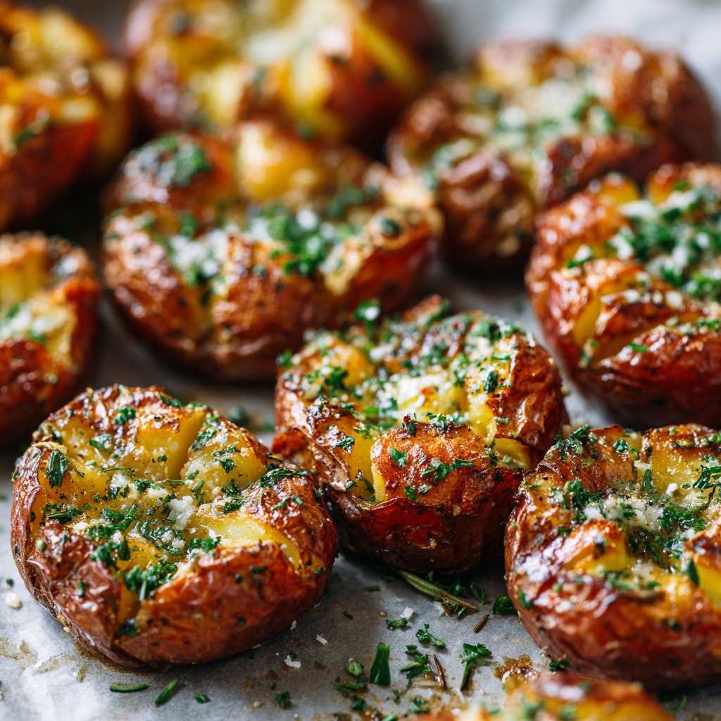 Smashed Red Potatoes with Garlic Bliss (Crispy, Buttery & Herb-Infused)