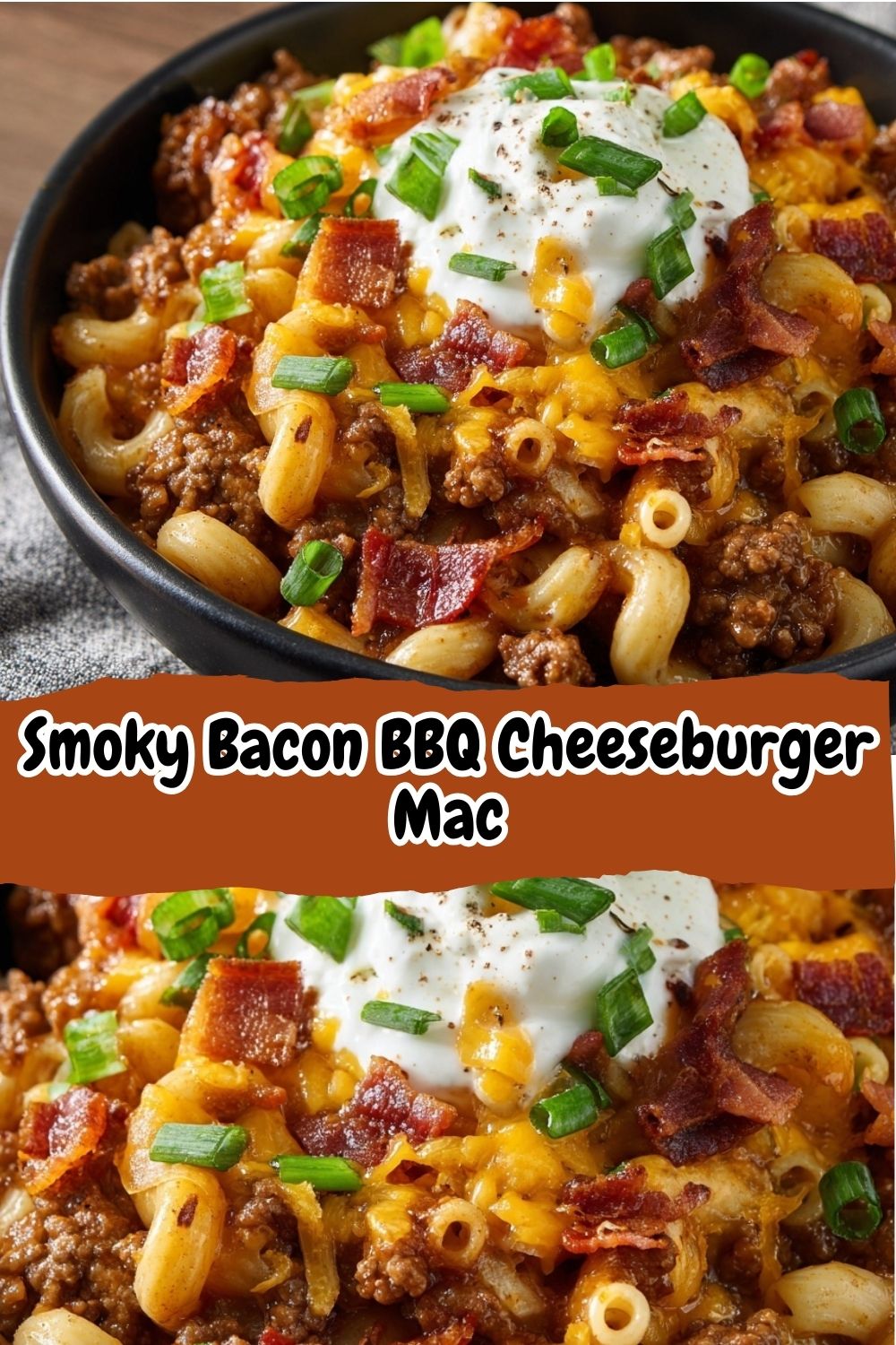 - The Grand Finale – Toppings! Transfer your glorious Smoky Bacon BBQ Cheeseburger Mac to bowls. Now, for the grand presentation: top it with the remaining crispy bacon, a generous sprinkle of fresh, green scallions, and a beautiful, cool swirl of extra sour cream. This not only looks fantastic but adds those final layers of texture and flavor that make the dish unforgettable.