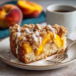 Southern peach crumb cake is a delightful dessert made with a buttery, tender base, a juicy layer of fresh peaches, and a golden, sweet crumble topping. It’s a comforting and nostalgic treat perfect for summer gatherings or a cozy afternoon snack.