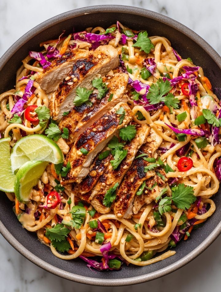 Imagine this: tender, golden chicken and wholesome whole wheat pasta, all tangled up in a sauce that’s the stuff of dreams. We’re talking creamy, rich peanut butter, a punch of salty soy sauce, a bright squeeze of lime, and just the right amount of chili kick to keep things interesting. It’s a Thai-inspired hug in a bowl that’s somehow both wildly exciting and deeply comforting. This isn’t just another pasta dish; it’s a protein-packed, veggie-loaded, crave-worthy masterpiece that comes together in about 30 minutes. I’m talking real-life, weeknight magic with a serious “wow” factor. So, tie on your favorite apron, and let’s make some kitchen memories together!