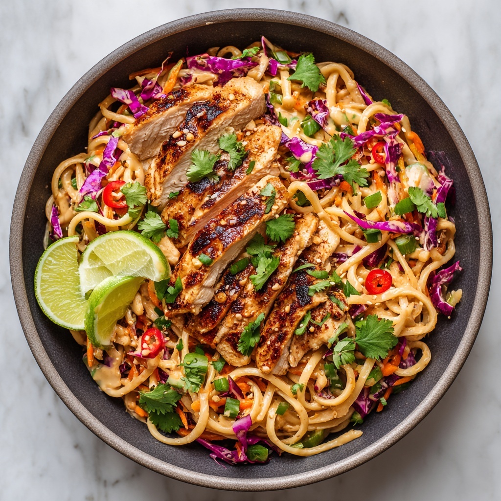 Presentation is part of the fun! I love serving this pasta in wide, shallow bowls so you can see all the colorful components. For a true restaurant-style finish, use tongs to give the pasta a little twist and lift as you plate it, creating a beautiful nest. Pile the chicken and veggies on top, then finish with that vibrant green cilantro and a final dusting of chili flakes for a pop of color. A lime wedge perched on the side isn’t just for looks—it invites everyone to customize their last zesty squeeze. This dish is a complete meal in a bowl, but it’s also fantastic with a simple side of crunchy cucumber slices or a light, tangy Asian-inspired slaw.