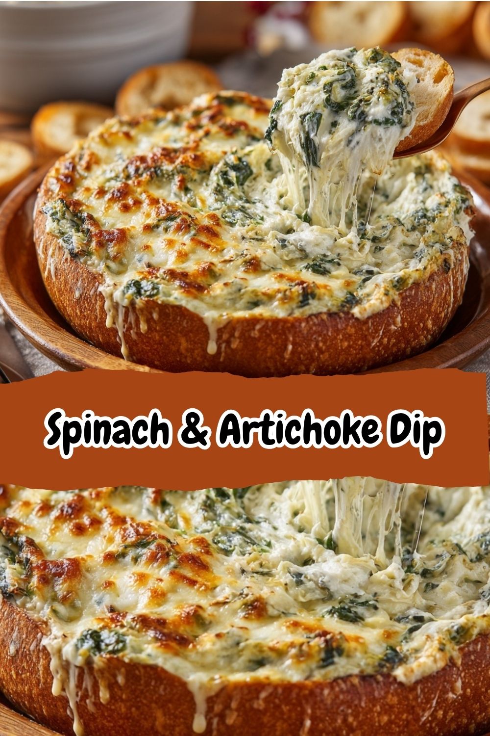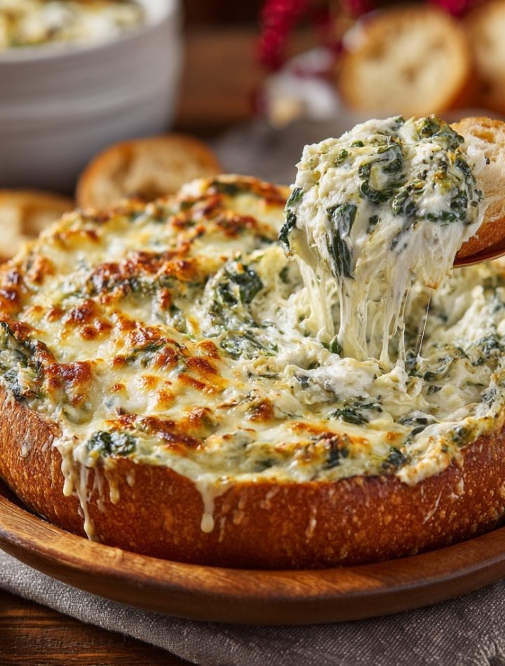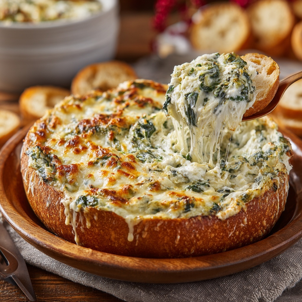 This Spinach & Artichoke Dip is rich, creamy, and irresistibly cheesy—perfect for parties, holidays, or game day. Baked until golden and bubbling, it’s packed with spinach, artichokes, and melty goodness. Serve it straight from a warm bread bowl for a rustic, ready-to-scoop presentation that guests will devour.
