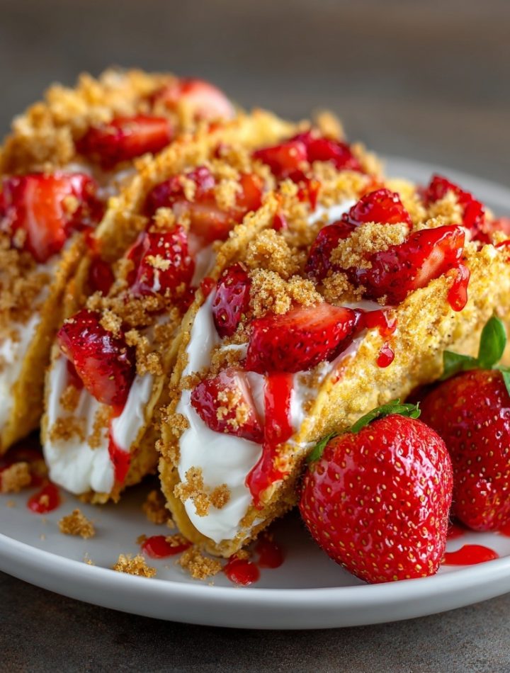 Strawberry Crunch Cheesecake Tacos :Crispy, Creamy & Berry-Licious