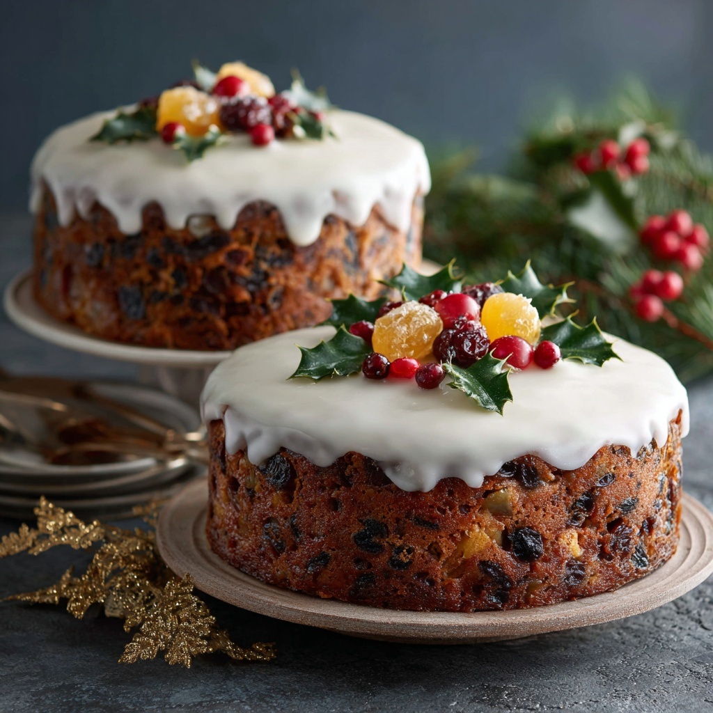 Rich, moist, and soaked in tradition—this English Christmas Cake is a celebration in every slice. Packed with dried fruit, warm spices, and finished with marzipan and royal icing, it’s the ultimate make-ahead holiday treat. This double-batch version makes two 8-inch round cakes—perfect for gifting or feasting.
